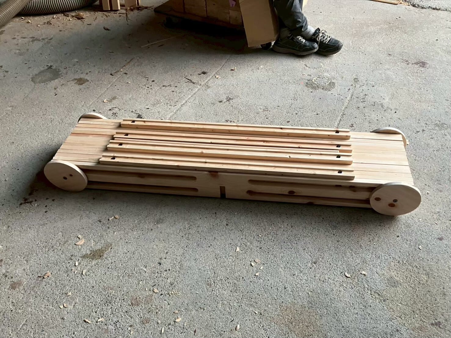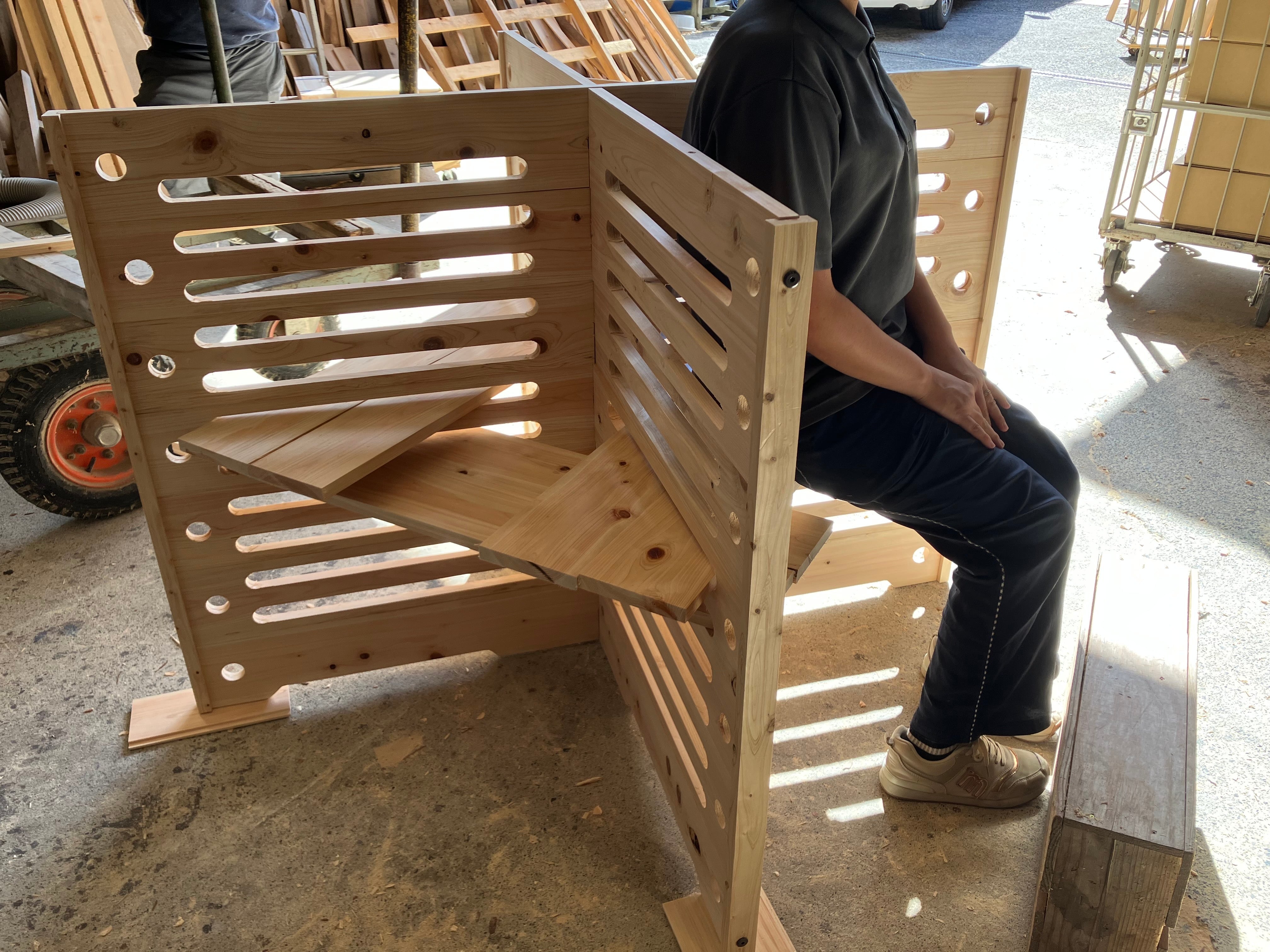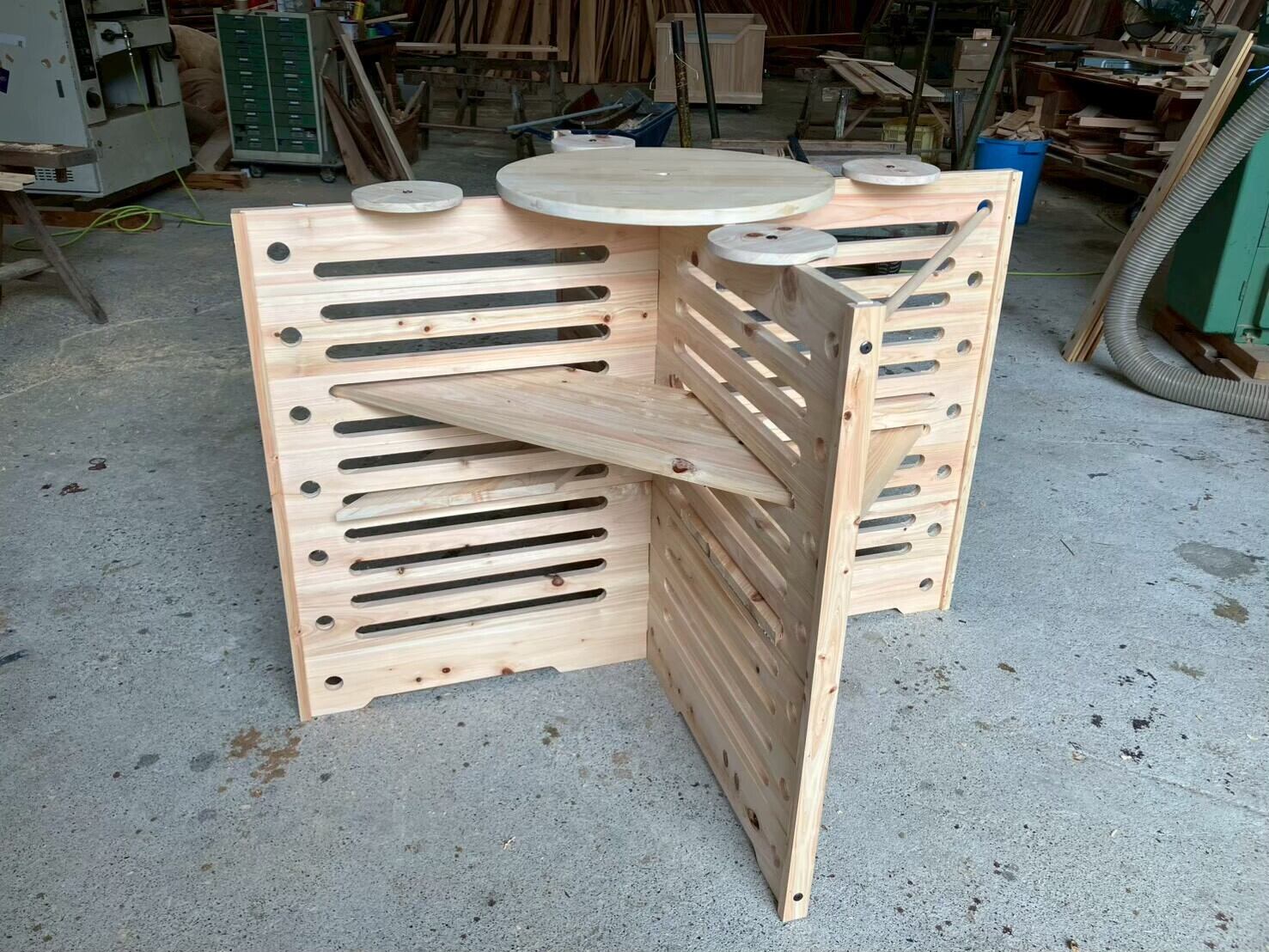 高校生が考案し、設計したものを製材所のこれまでの経験と技術を加えて結集した製品です。シンプルながらも堅牢な造りが自慢です。